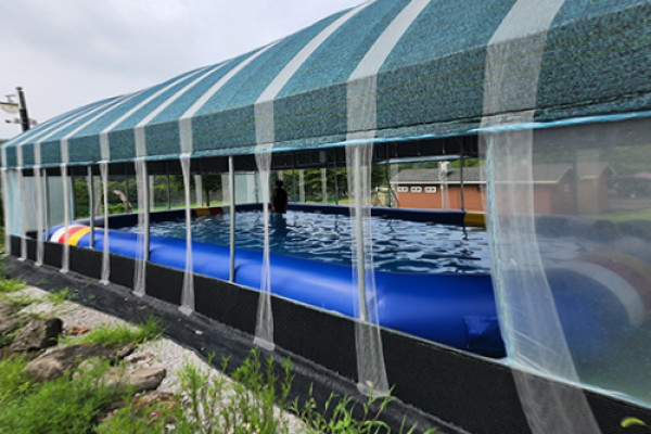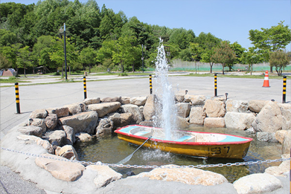 관리동, 매점, 팡팡놀이시설, 수영장, 분수대, 바베큐장